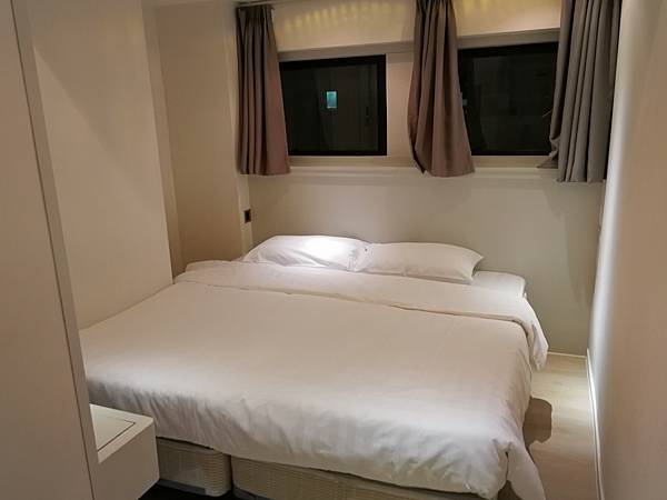 打開門一看! OMG!! 這比我小時候睡的單人床差不多,竟然說是雙人房,兩個人睡的選擇性有幾種: