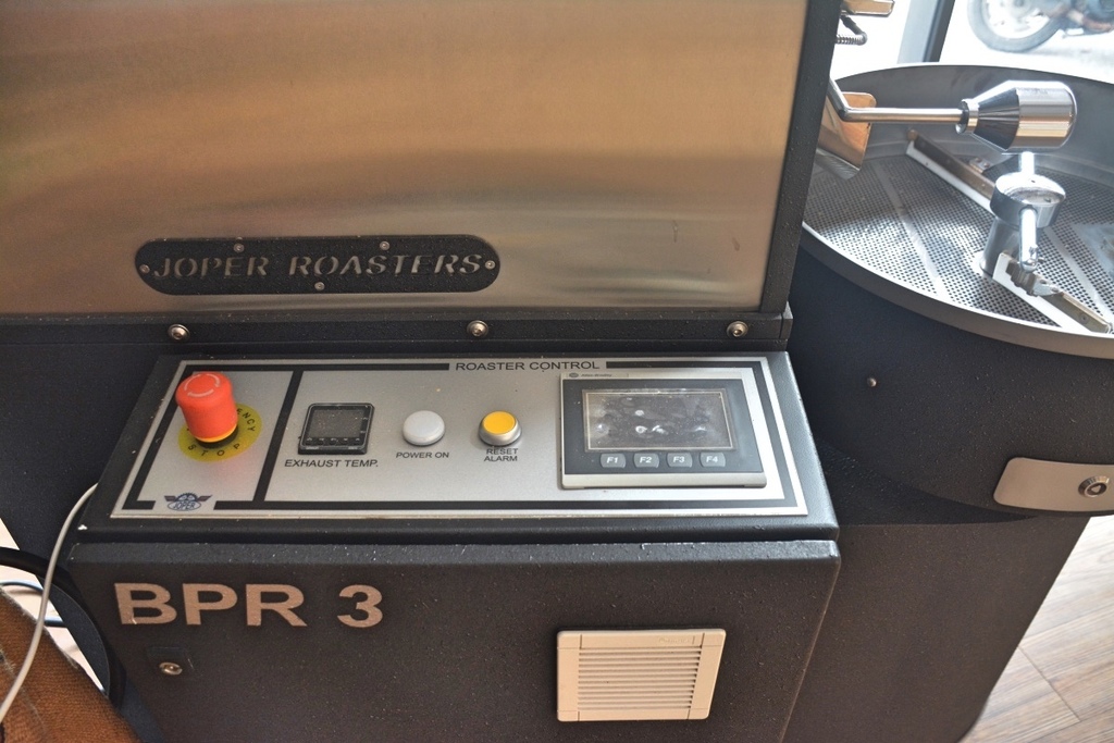 一進門就可以看到此行的主要目標,葡萄牙進口的烘豆機,一台要價100多萬--JOPER BPR3 3KG版的烘豆機。