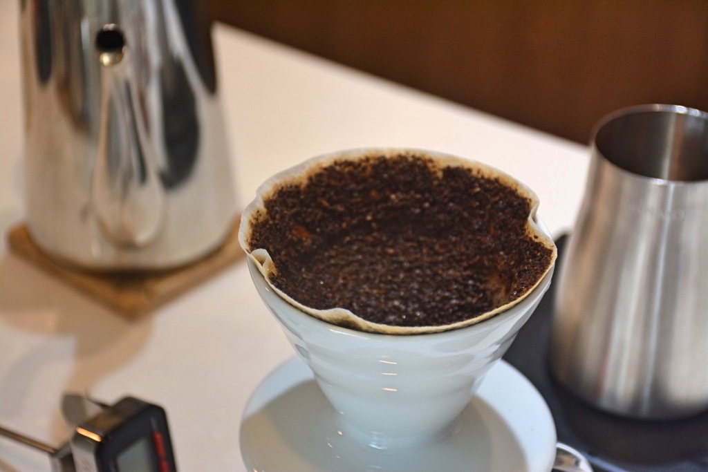 看老闆阿生的手沖方式,讓我也有所領悟,除了磨豆機不同,其他和我使用的器具並無太大差異,出水和粉比例也差不多是1:15。