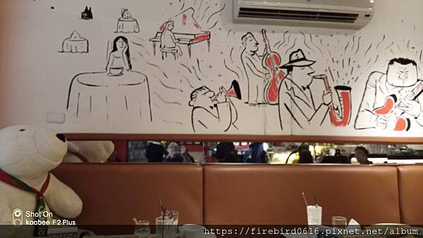 沿著北極熊視線,彩繪牆下方是沙發區。