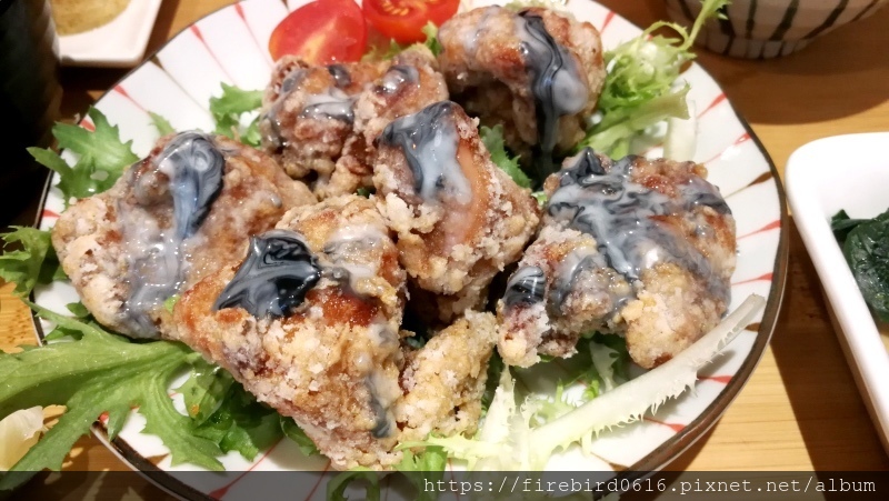 近看一下雞塊,很像老婆大人用氣炸鍋前會是用的日清炸雞粉,本身已經有點鹹香味,配飯剛剛好。