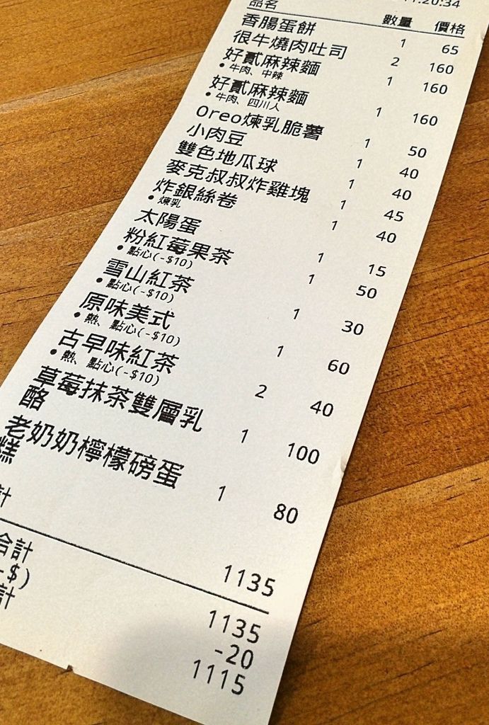 菜單的名稱頗有創意,包含很多中壢在地的元素:中壢李大條(是誰?),美華肉鬆等。還有很多沒見過的吃法:蛋餅夾維力炸醬麵?